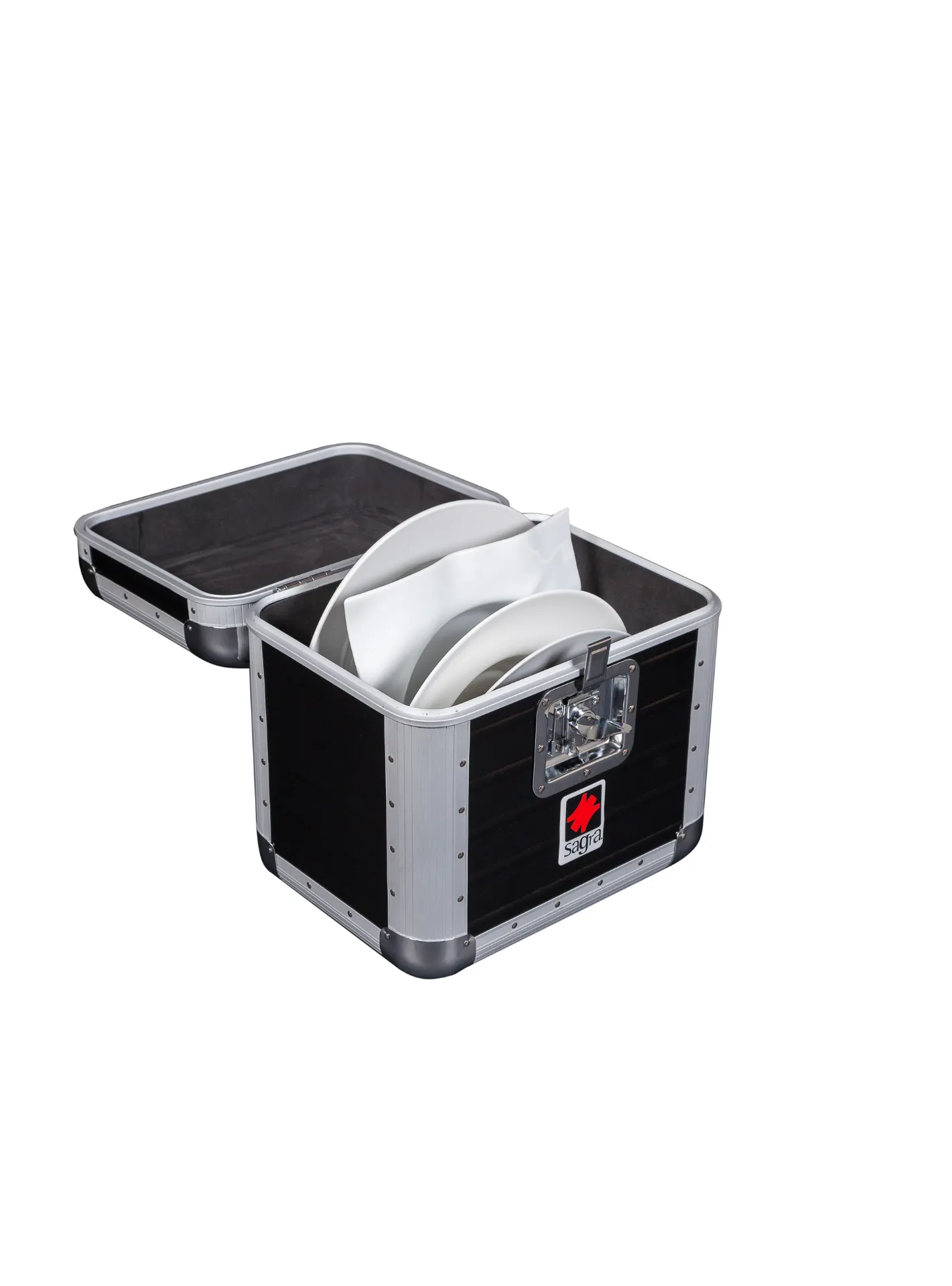 El maletín para platos SAGRA E13 está diseñado para garantizar una protección superior. Con estructura robusta, materiales ultraligeros y espumas internas con separadores, cada plato queda inmovilizado y protegido frente a golpes, vibraciones o desplazamientos durante el trayecto.